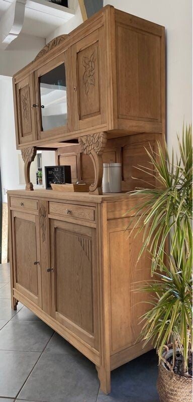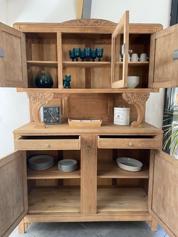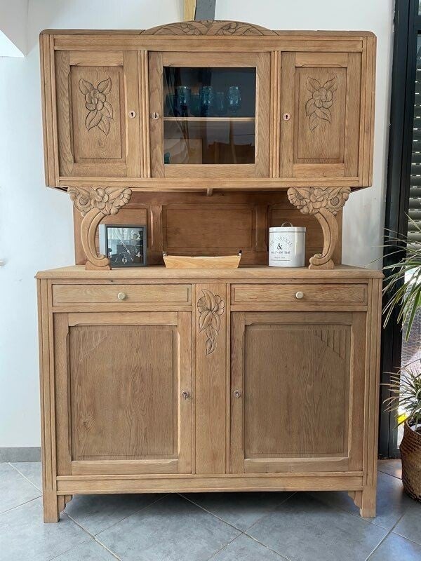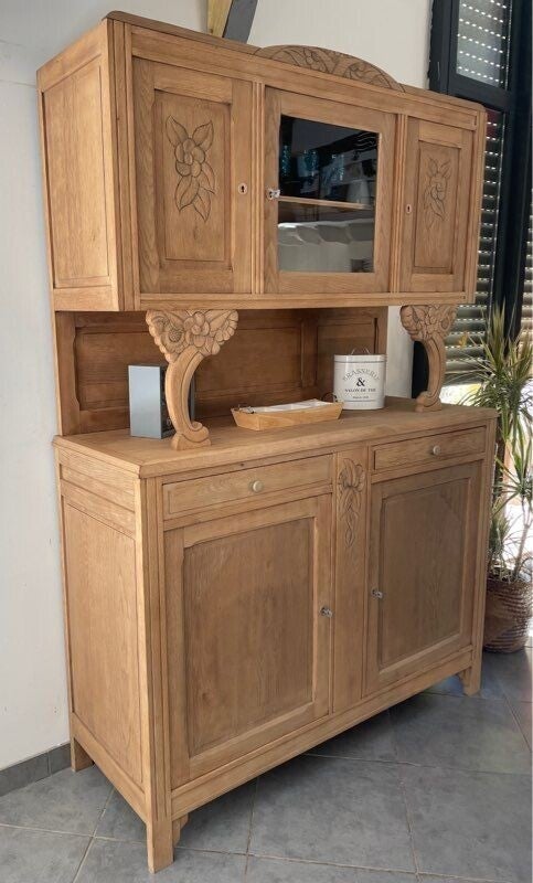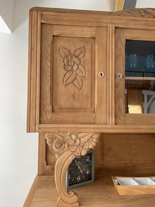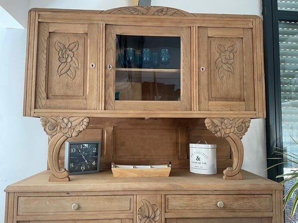 Buffet ancien Art déco en chêne massif soigneusement rénové.