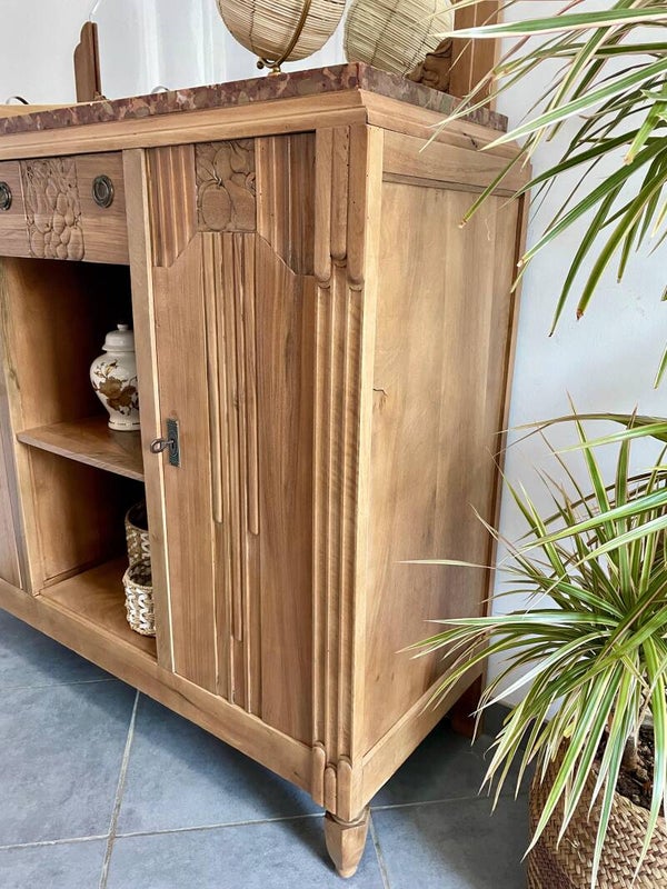 Augustin : Buffet ancien Art Déco noyer massif, marbre & miroir